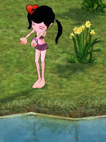 農場の池で我慢。 新作の水着は出ないんですかねえ?