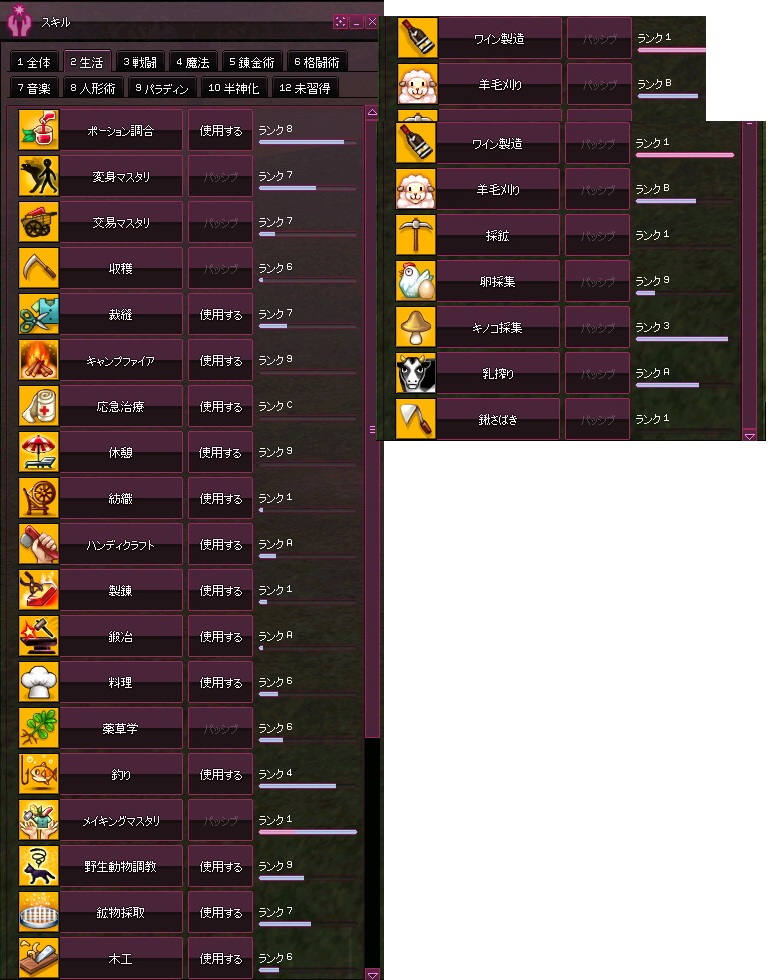 生活スキルがいくつか追加される