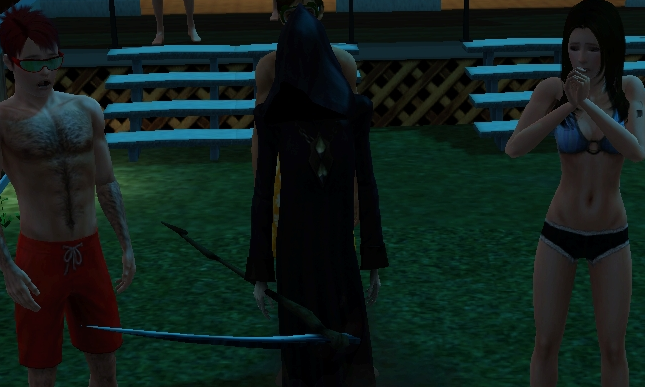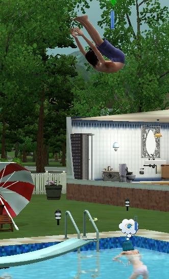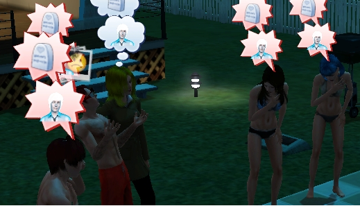プールサイドに出来あがったお墓を