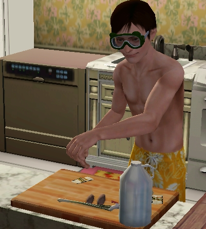 水着姿で夕食を作るんふぁさん。